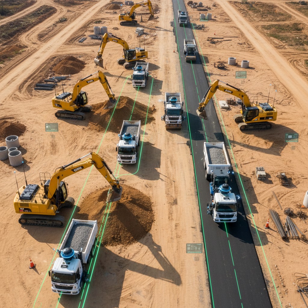 Every autonomous vehicle also generates real-time data about its operations. Engineers can monitor speed, load, distance covered, fuel usage, and performance metrics from a remote dashboard. This enhances transparency, accountability, and compliance with government quality standards. These systems ensure that every phase of construction is documented and traceable — a major advantage during audits and inspections.